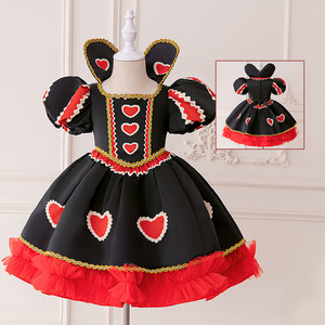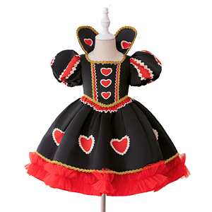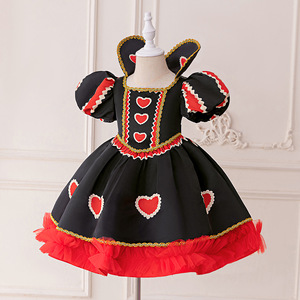 亚马逊款礼服万圣节红桃心皇后角色扮演舞台服装cos服 儿童公主裙