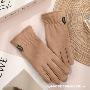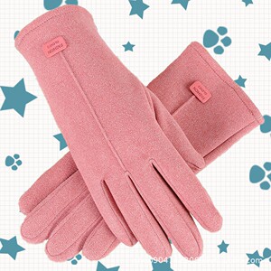 保暖手套女士冬季户外骑行加厚布艺防寒触屏毛口防风蓄热保暖手套