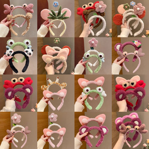 可爱秋冬女可爱日常外戴毛茸茸防滑不勒头小熊发饰宽边ins风冬季