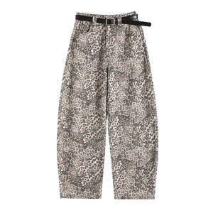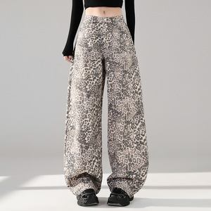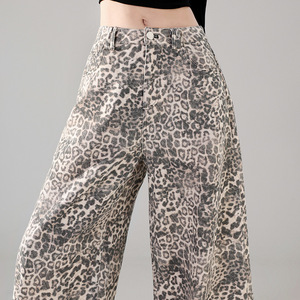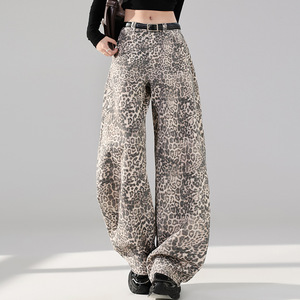 实拍秋季新款 全棉洗水时尚高腰印花阔腿裤显瘦休闲弯刀裤