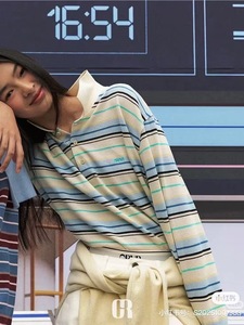 现货韩国grove拼色翻领设计感气质POLO领长袖T恤宽松小众潮牌显瘦