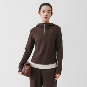 秋季新款女外套高级感纸片人桑蚕丝羊毛云感针织上衣拉链休闲帽衫