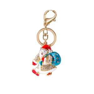 跨境可爱镶钻圣诞老人卡通钥匙扣合金圣诞节汽车钥匙圈包包挂饰品