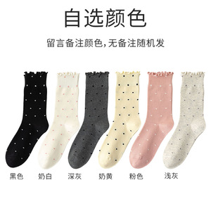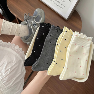 灰色袜子女春秋花边波点中筒袜配德训鞋长袜休闲秋天木耳边堆堆袜