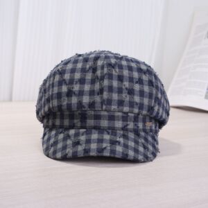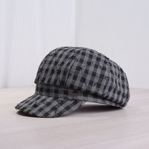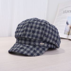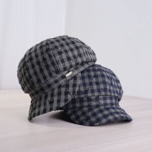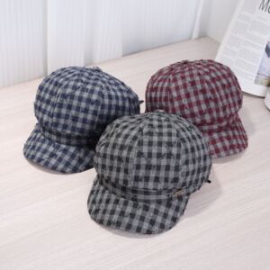 文艺简约前进帽男女红色格子秋冬季薄款休闲透气条纹鸭舌帽贝雷帽