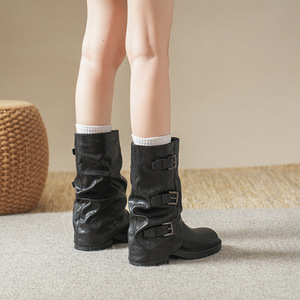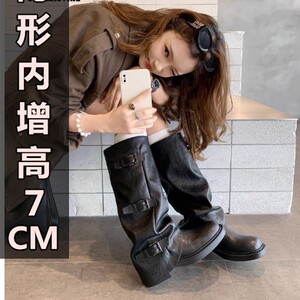 苏茵茵同款辣妹裤管靴7cm增高扣带中筒西部骑士长靴女堆堆女短靴