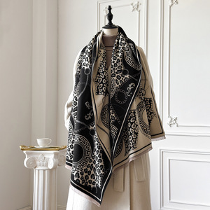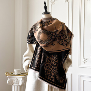 秋冬新款仿羊绒围巾女时尚百搭复古潮流跨境欧美豹纹披肩围巾秋冬