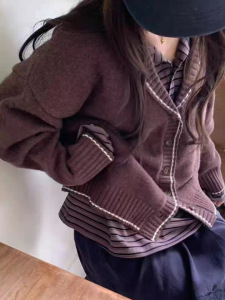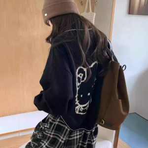 2025新款宽松百搭慵懒风毛衣开衫女秋冬加厚韩版卡通针织衫外套女