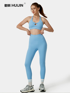 欧美瑜伽套装美背镂空文胸瑜伽裤紧身裤两件套运动套装女健身