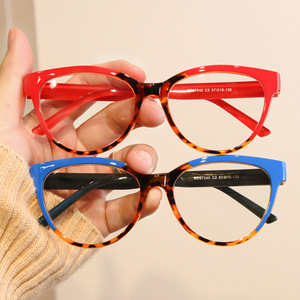 三角猫眼拼色平光镜2025新款眼镜架个性ins凹造型欧美街拍眼镜框