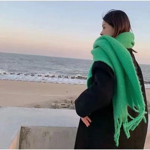2025纯色围巾女秋冬围脖韩版高级感情侣马海毛保暖加厚粗流苏格子