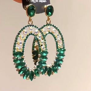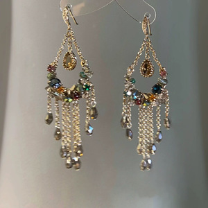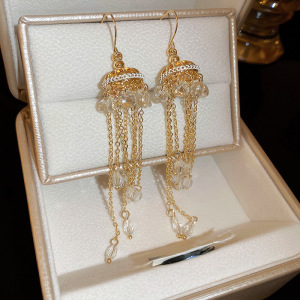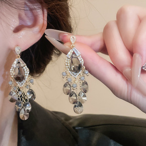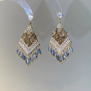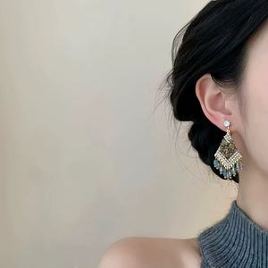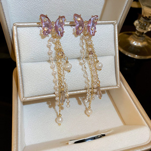 56#银针蝴蝶镶钻水滴流苏耳钉
