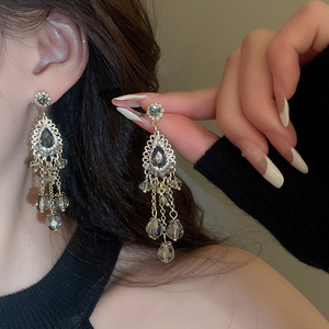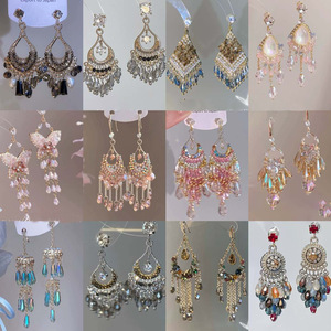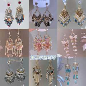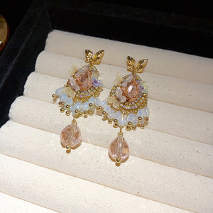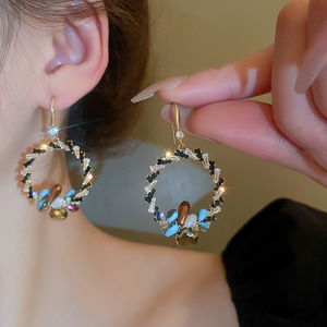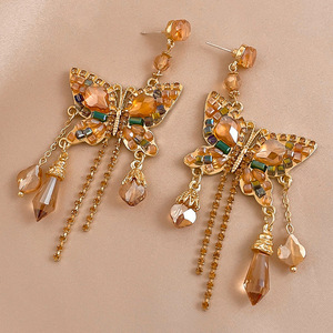 超闪水晶蝴蝶流苏耳环时尚百搭宫廷风精致耳钉轻奢高级感小众耳饰