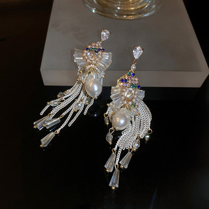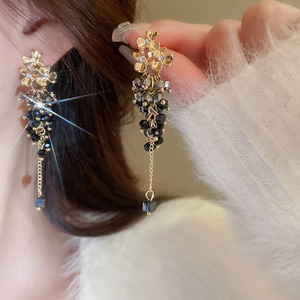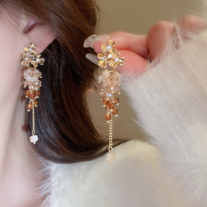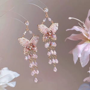 55#银针镶钻花朵蝴蝶流苏耳钉