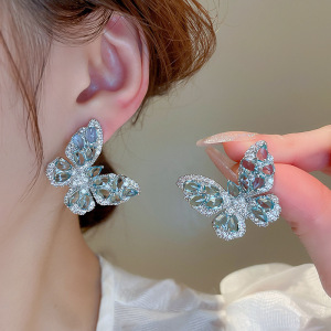 10#银针镶钻锆石蝴蝶水滴耳钉