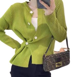 2025秋冬新款韩版不规则侧边扣设计感排扣针织开衫毛衣女外套上衣