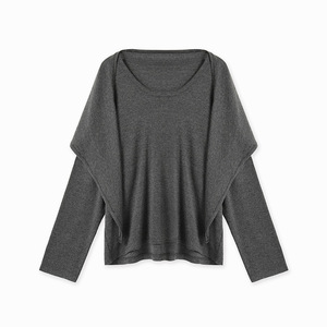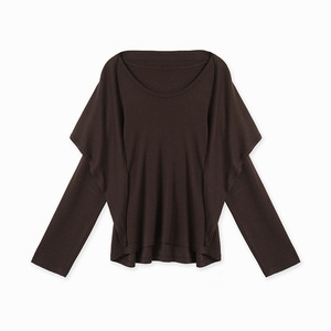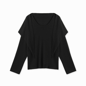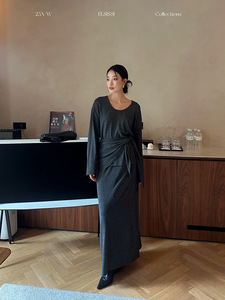ELSISSI2025秋季新款女装圆领收腰冷淡系长袖t恤女慵懒风打底上衣