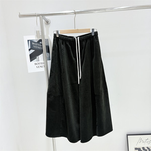 韩国订单秋冬新款宽松复古显瘦慵懒风阔腿裤灯笼裤松紧腰抽绳口袋