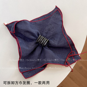 蓝红两用方巾马尾夹