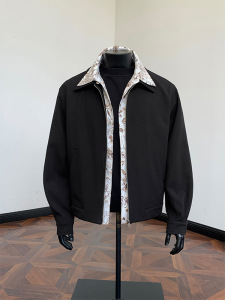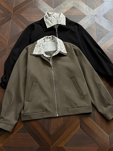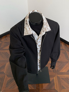 美式复古内衬花色拼接假两件外套潮牌欧美街头老钱风哈灵顿夹克男