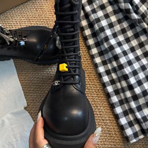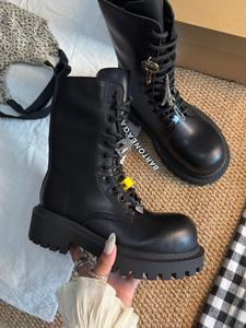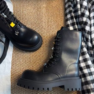 厚底增高系带马丁靴女2025秋冬新款百搭吊坠中筒靴复古黑色皮靴子