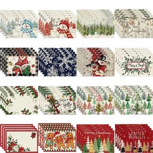 跨境新款圣诞节餐垫家居装饰厨房餐垫餐厅北欧风亚麻数码印花餐垫