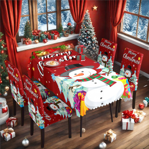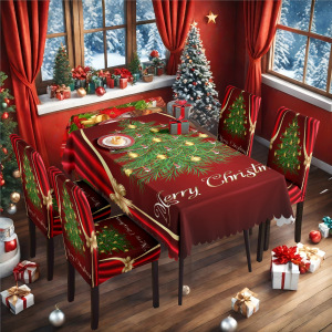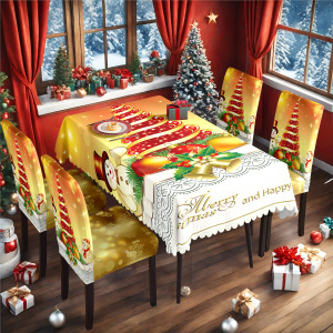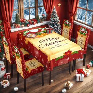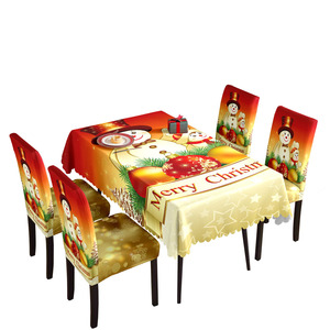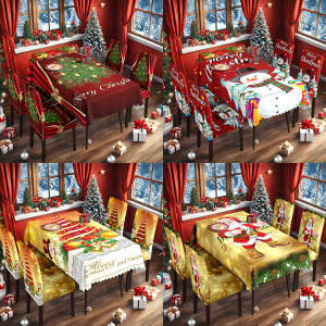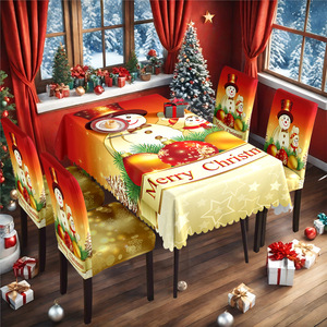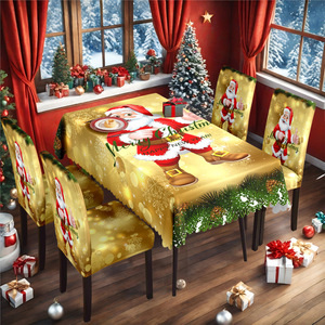 跨境专供原创圣诞老人印花桌布防水台布全包牛奶丝椅子套圣诞桌布