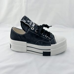 新款现货Rickowensconvorse低帮布鞋男女增高厚底星牌帆布鞋洗水