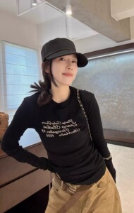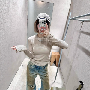高品质 25ss早秋新款字母印花假两件长袖T恤女