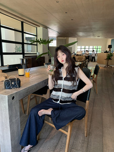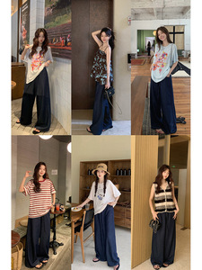 张贝贝ibell莱赛尔天丝棉原色抽绳牛仔裤女高腰显瘦直筒阔腿裤女