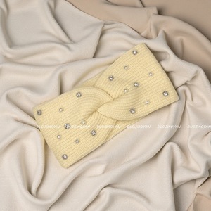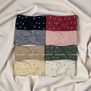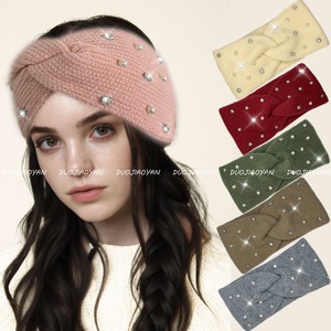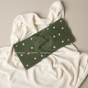 跨境秋冬时尚珍珠毛线发带保暖针织交叉头巾宽边弹力防寒头饰现货