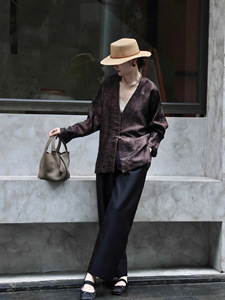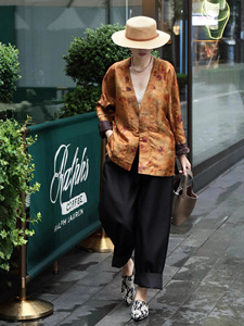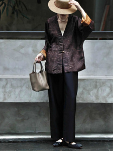 双面穿真丝香云纱外套复古新中式国风改良V领一字扣古典端庄上衣