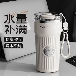 团购乐享双饮大容量咖啡杯极光女神条纹保温杯316不锈钢水杯