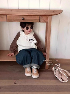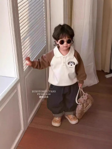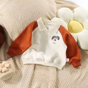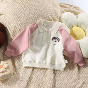 儿童秋季卫衣新款洋气插肩翻领polo可爱印花卫衣男女宝宝卡通拼接