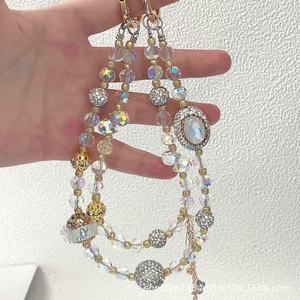 爆闪镶钻款西域公主流苏珠手机挂件水晶串珠链条包包饰品钥匙挂件