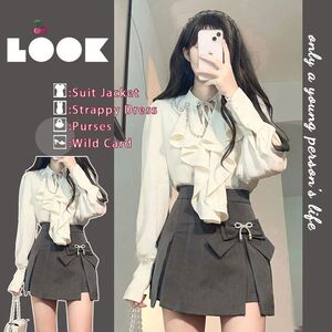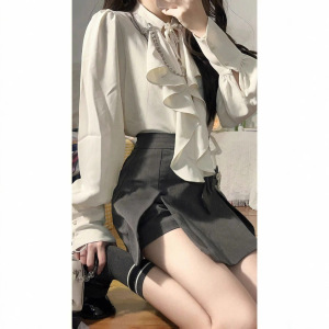 小香风早春新款荷叶边衬衫+高腰显瘦包臀半身裙两件套【原版面料