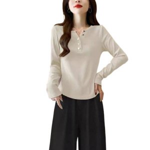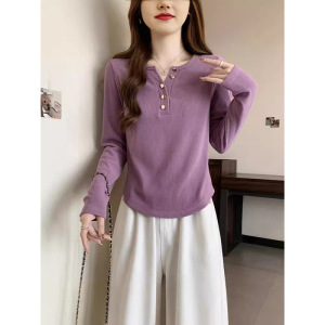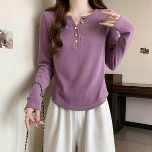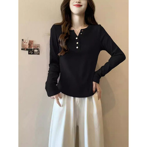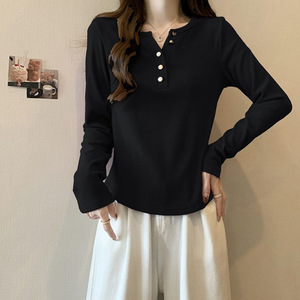 棉质正肩纯欲长袖t恤新款大码胖mm半开领打底春秋显瘦休闲上衣ins
