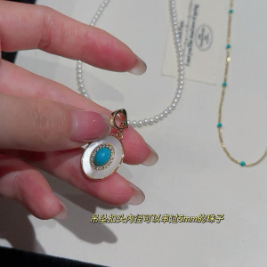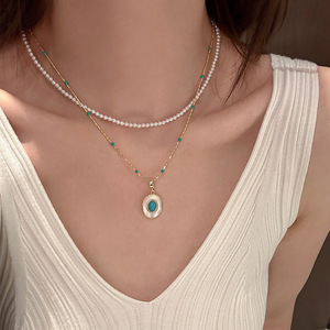 绿松石水晶珍珠项链女 轻奢小众叠戴气质施家米珠锁骨链 同款耳环