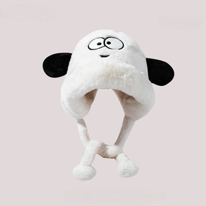 卡通可爱小狗帽子女秋冬季毛绒加厚保暖护耳帽韩版百搭套头雷锋帽