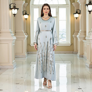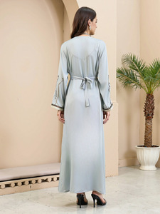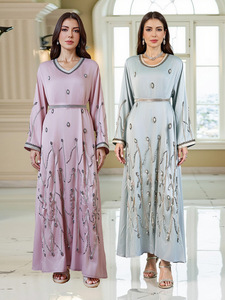 跨境电商亚马逊中东穆斯林长袍 迪拜abaya烫钻女士连衣裙外贸批发