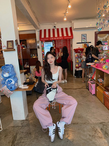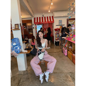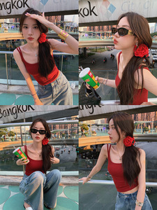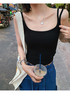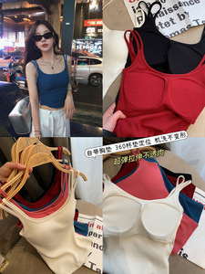 张贝贝弹力设计感胸垫一体短款背心吊带女修身纯色上衣