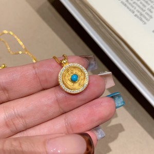 纯银S925新中式蓝松石可转动八宝罗盘项链罗盘精致轻奢高级感小众
