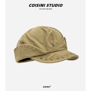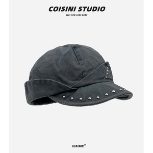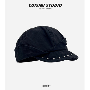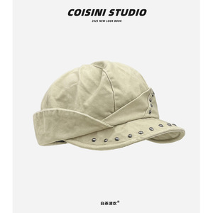 2025新款复古铆钉不规则圆顶八角帽子女秋季休闲百搭贝雷帽显脸小