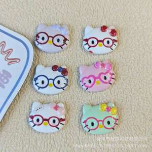 可爱眼镜猫咪卡通diy饰品配件奶油胶树脂小配件洞洞鞋扣材料包