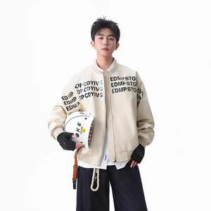 美式字母印花棒球服皮衣外套男款潮牌秋季宽松设计感痞帅pu皮夹克