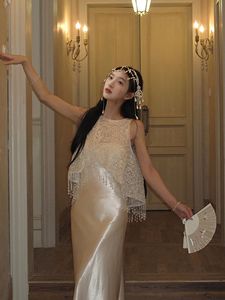 新中式名媛风手工串珠流苏珍珠设计上衣轻奢高级感无袖上衣 N8059