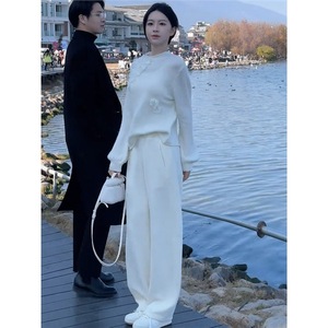 深圳南油时尚套装女2025秋季设计感洋气针织长袖上衣阔腿裤两件套