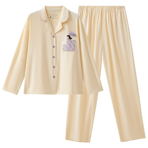 十月结晶纯棉家居服套装长袖春秋款抗菌女士简约休闲男士情侣睡衣
