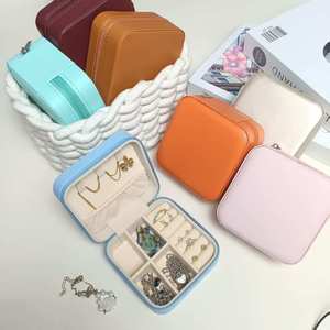 方形pu皮革首饰盒可爱风耳钉戒指饰品收纳盒防氧化轻便珠宝手饰包
