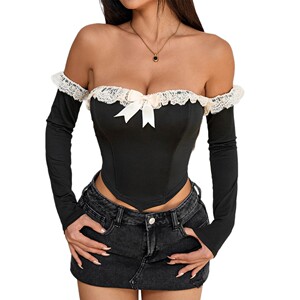 欧美跨境辣妹女装纯欲甜辣蕾丝花边蝴蝶结拼接鱼骨抹胸上衣11972